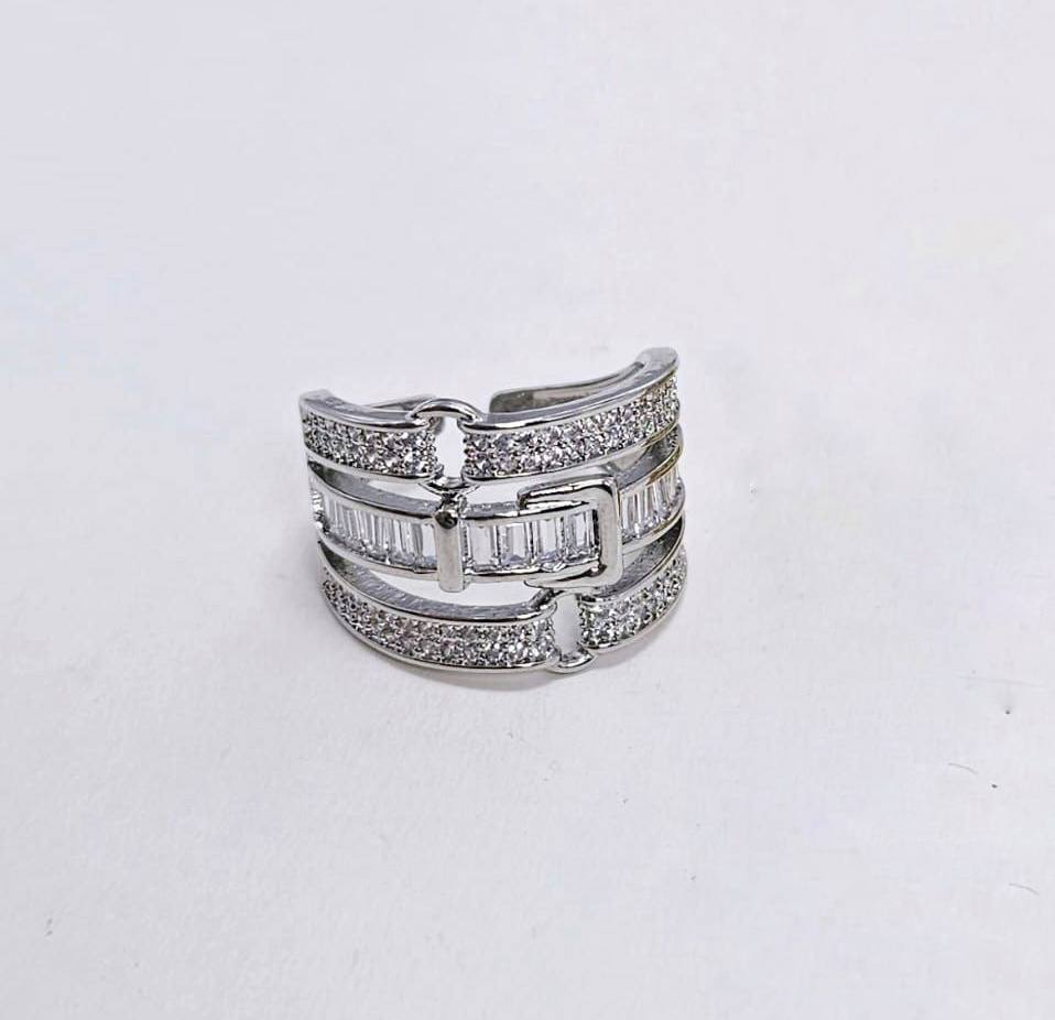 Кольцо безразмерное с фианитами размер 20*15мм цвет серебро в Мурманске