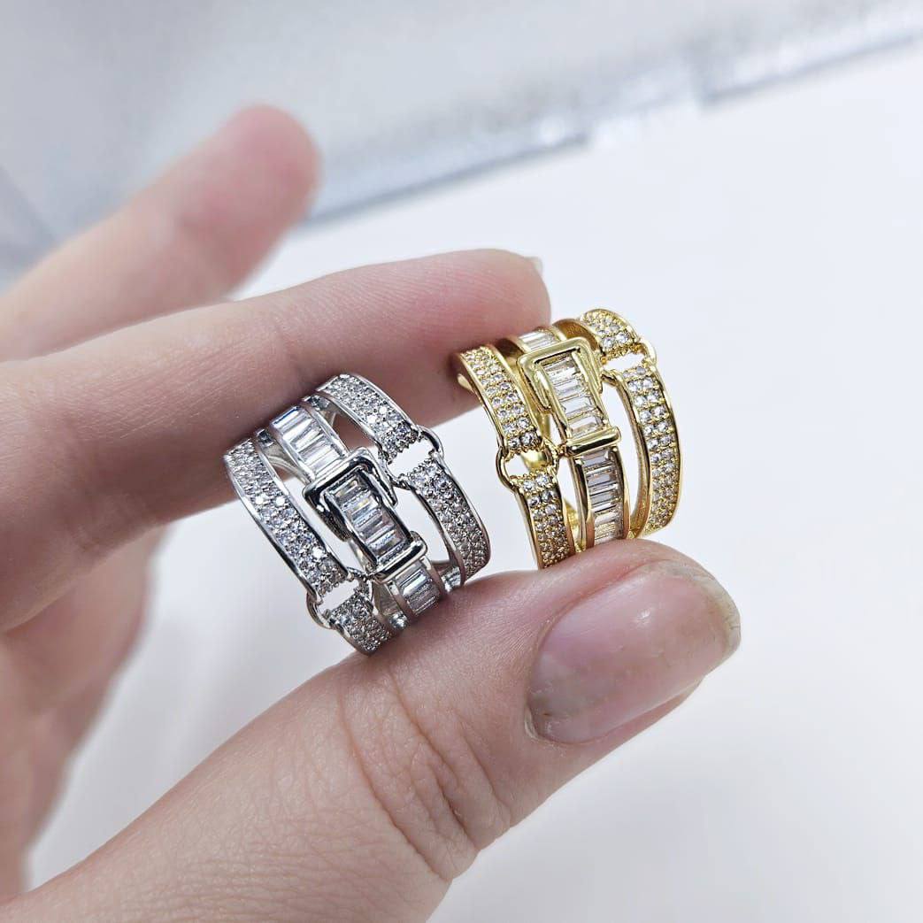 Кольцо безразмерное с фианитами размер 20*15мм цвет золото в Мурманске