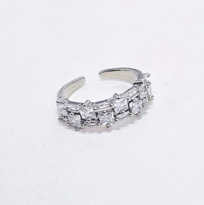 Кольцо безразмерное с фианитами размер 21*6мм цвет серебро в Мурманске